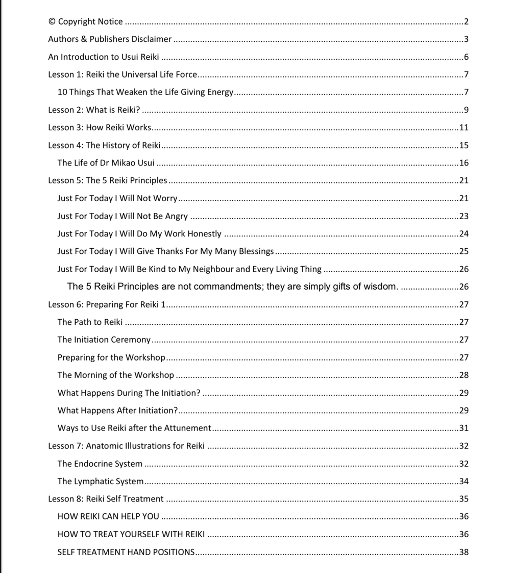 This ebook covers level one two reiki master course for extra learning I recommend getting attuned by a qualified reiki master if you want to take it to a professional level